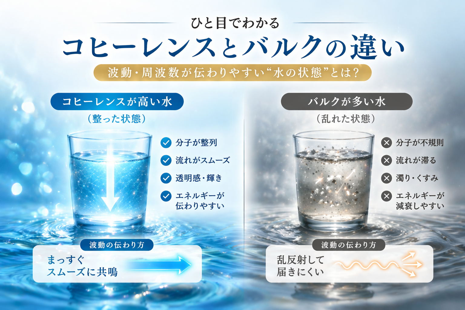 『コヒーレンス』とは、水分子同士が秩序立って整い、共鳴しやすい状態のことを指します。